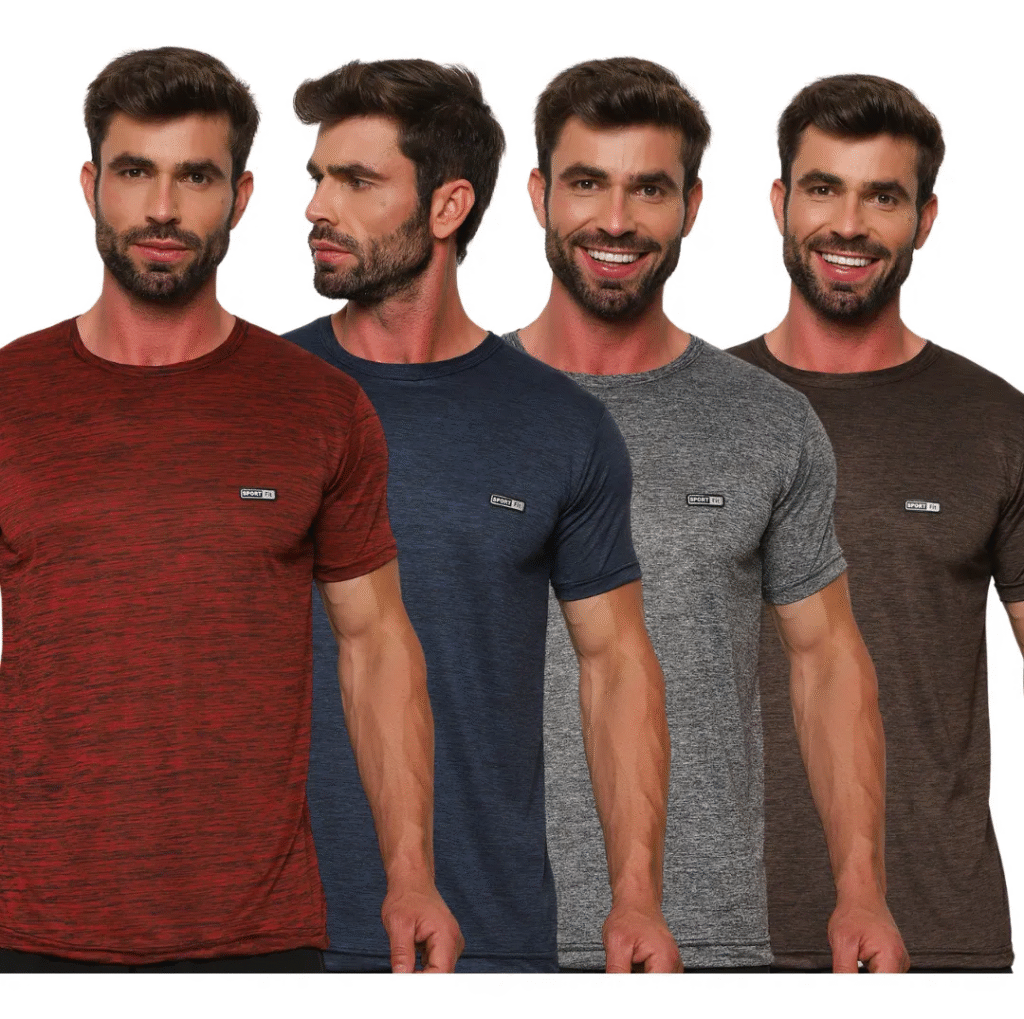 👕 Kit 4 Camisetas Manga Curta Dry Fit Masculina Academia Slim