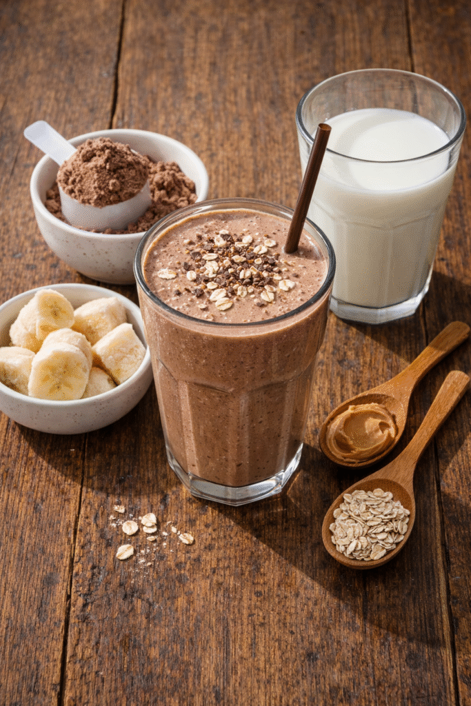 - 1 scoop de whey protein sabor chocolate (30g)