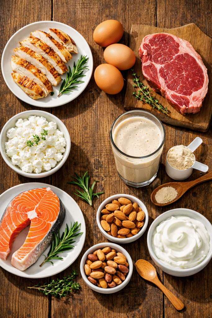 📸 Alimentos ricos em proteínas essenciais para hipertrofia muscular